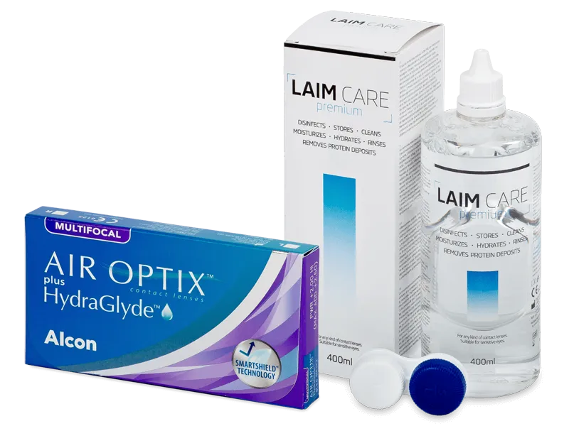 Air Optix plus HydraGlyde Multifocal (6 läätse) + Laim Care läätsevedelik 400 ml